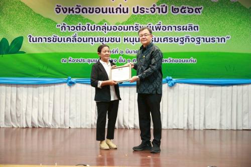 พช.เมืองขอนแก่น : ร่วมงาน “มหกรรมการออม 52 ปี ทุนชุมชนขับเคลื่อนเศรษฐกิจฐานราก” มุ่งสร้างวินัยการเงิน เสริมความเข้มแข็งชุมชนอย่างยั่งยืน วันที่ 6 มีนาคม 2569 ณ ห้องประชุมแก่นเมือง ชั้น 1 ศาลากลางจังหวัดขอนแก่น ** นายขจรเกียรติ รักพานิชมณี ผู้ว่าราชการจังหวัดขอนแก่น เป็นประธานเปิดงาน “มหกรรมการออม 52 ปี ทุนชุมชนขับเคลื่อนเศรษฐกิจฐานราก จังหวัดขอนแก่น” พร้อมด้วย นายประจวบ รักแพทย์ รองผู้ว่าราชการจังหวัดขอนแก่น หัวหน้าส่วนราชการจังหวัดขอนแก่น โดยมี นางจิรภา เชื้อดวงผุย พัฒนาการจังหวัดขอนแก่น กล่าวรายงาน ทั้งนี้ มีผู้อำนวยการกลุ่มงาน พัฒนาการอำเภอ เจ้าหน้าที่พัฒนาชุมชน คณะกรรมการและสมาชิกกลุ่มออมทรัพย์เพื่อการผลิต รวมถึงภาคีเครือข่ายภาครัฐและเอกชน เข้าร่วมกิจกรรม จำนวน 208 คน ** การจัดกิจกรรมในครั้งนี้เนื่องในโอกาสครบรอบ 52 ปี วันก่อตั้งกลุ่มออมทรัพย์เพื่อการผลิต (6 มีนาคม 2569) ซึ่งกรมการพัฒนาชุมชนได้ส่งเสริมให้ประชาชนในหมู่บ้านและชุมชนรวมตัวกันออมเงินเพื่อเป็นแหล่งทุนของชุมชน ภายใต้แนวคิด “ใช้เงินเป็นเครื่องมือในการพัฒนาคน” โดยยึดหลักคุณธรรม 5 ประการ ได้แก่ ความซื่อสัตย์ ความเสียสละ ความรับผิดชอบ ความเห็นอกเห็นใจ และความไว้วางใจ เพื่อปลูกฝังวินัยทางการเงิน และเสริมสร้างความเข้มแข็งทางเศรษฐกิจให้กับชุมชนอย่างยั่งยืน ** ในโอกาสนี้ ผู้ว่าราชการจังหวัดขอนแก่นได้ให้เกียรติ มอบเกียรติบัตรประกาศเกียรติคุณรางวัลชมเชย แก่กลุ่มออมทรัพย์เพื่อการผลิตบ้านโนนค้อ และสมาชิกดีเด่น เพื่อเป็นขวัญและกำลังใจในการดำเนินงาน ** ในการนี้ นางสาวสุพิชา สอนบุญลา พัฒนาการอำเภอเมืองขอนแก่น พร้อมด้วย เจ้าหน้าที่พัฒนาชุมชน และคณะกรรมการกลุ่มออมทรัพย์เพื่อการผลิตบ้านหนองหัววัว ม.6 ตำบลโคกสี ร่วมกิจกรรม ในครั้งนี้